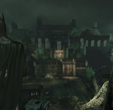 Asylum amplificó los rasgos más sombríos tanto del superhéroe como de su mitología. Junto con Silent Hill (1999) y Amnesia: The Dark Descent (2010), la primera entrega de la serie Arkham es uno de los juegos más siniestramente atmosféricos de todos los tiempos. El jugador debe conducir a Batman por celdas de aislamiento, habitaciones psiquiátricas, pasillos, ductos, salas de cirugía y morgues, compartiendo con él la sensación de claustrofobia y, no pocas veces, sintiéndose más desorientado que el protagonista.